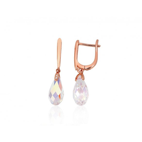 Sidabriniai auskarai ant cilindrinės spynos2204314(PAu-R)_CZ+CZ-MIXW, Sidabras 925°, raudonas auksas (padengti), Cirkonai