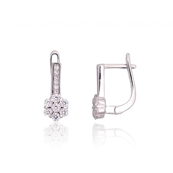 Sidabriniai auskarai ant cilindrinės spynos2203767(PRh-Gr)_CZ, Sidabras 925°, rodis (padengti), Cirkonai